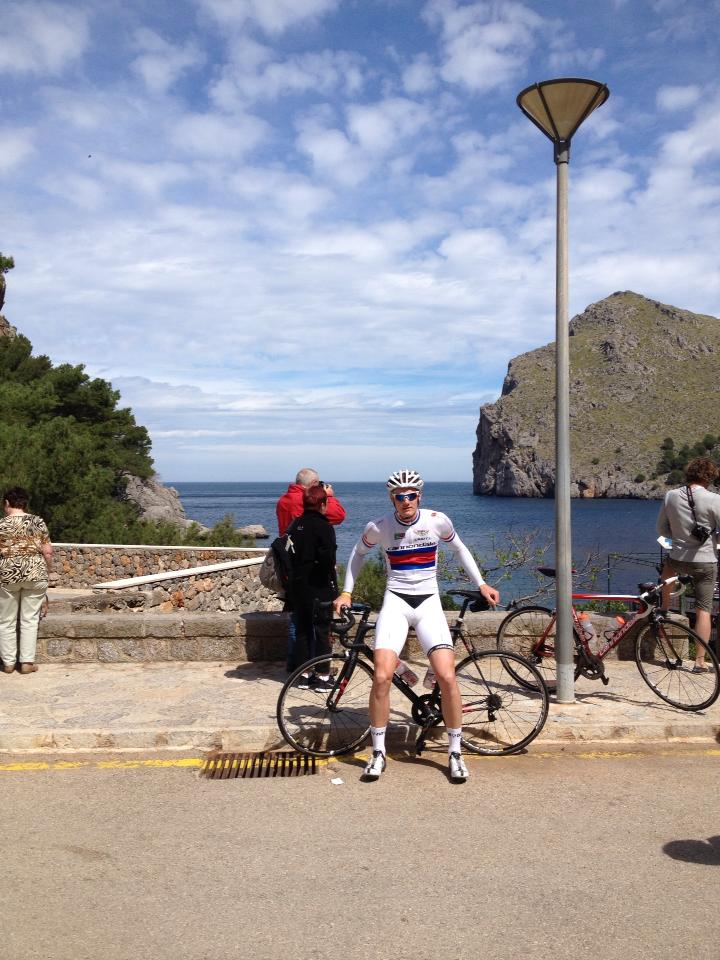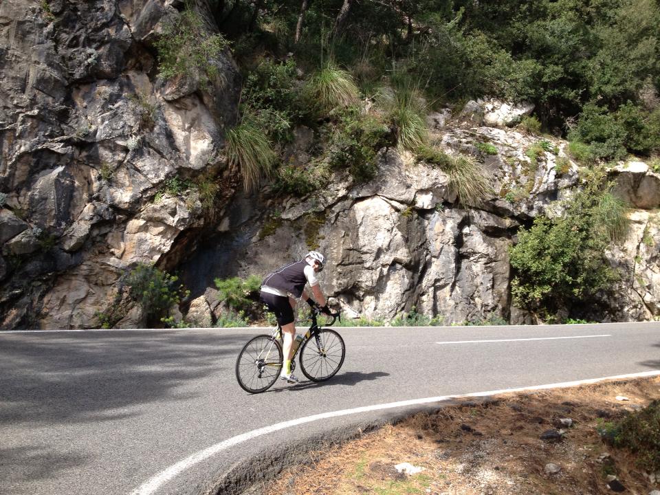 Her er han på vei opp en av mange stigninger på Mallorca.