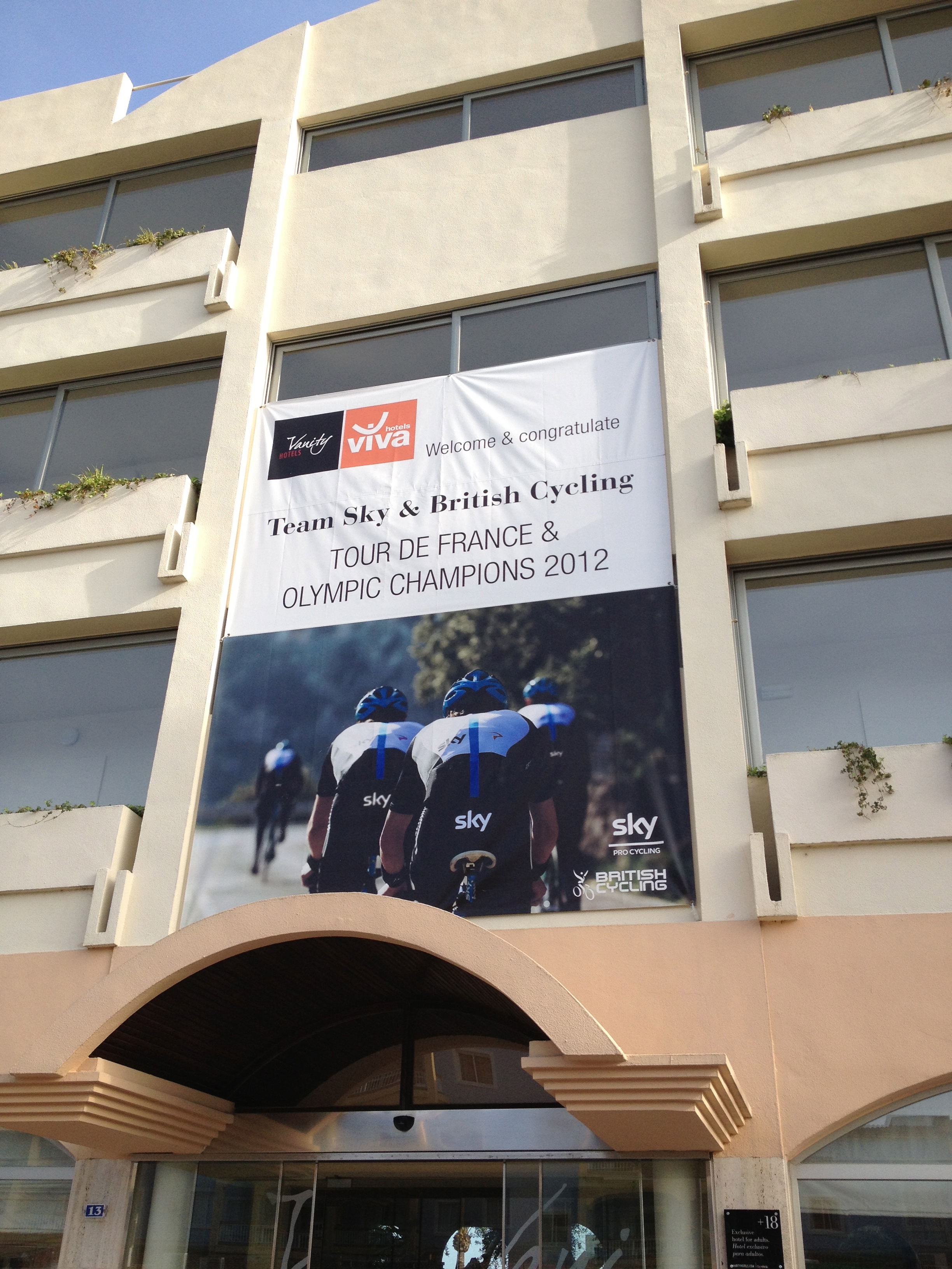 Hotellet til SKY rett nedi gaten, kun et steinkast unna vårt hotell hvis du er over gjennomsnittet god til å kaste stein.
